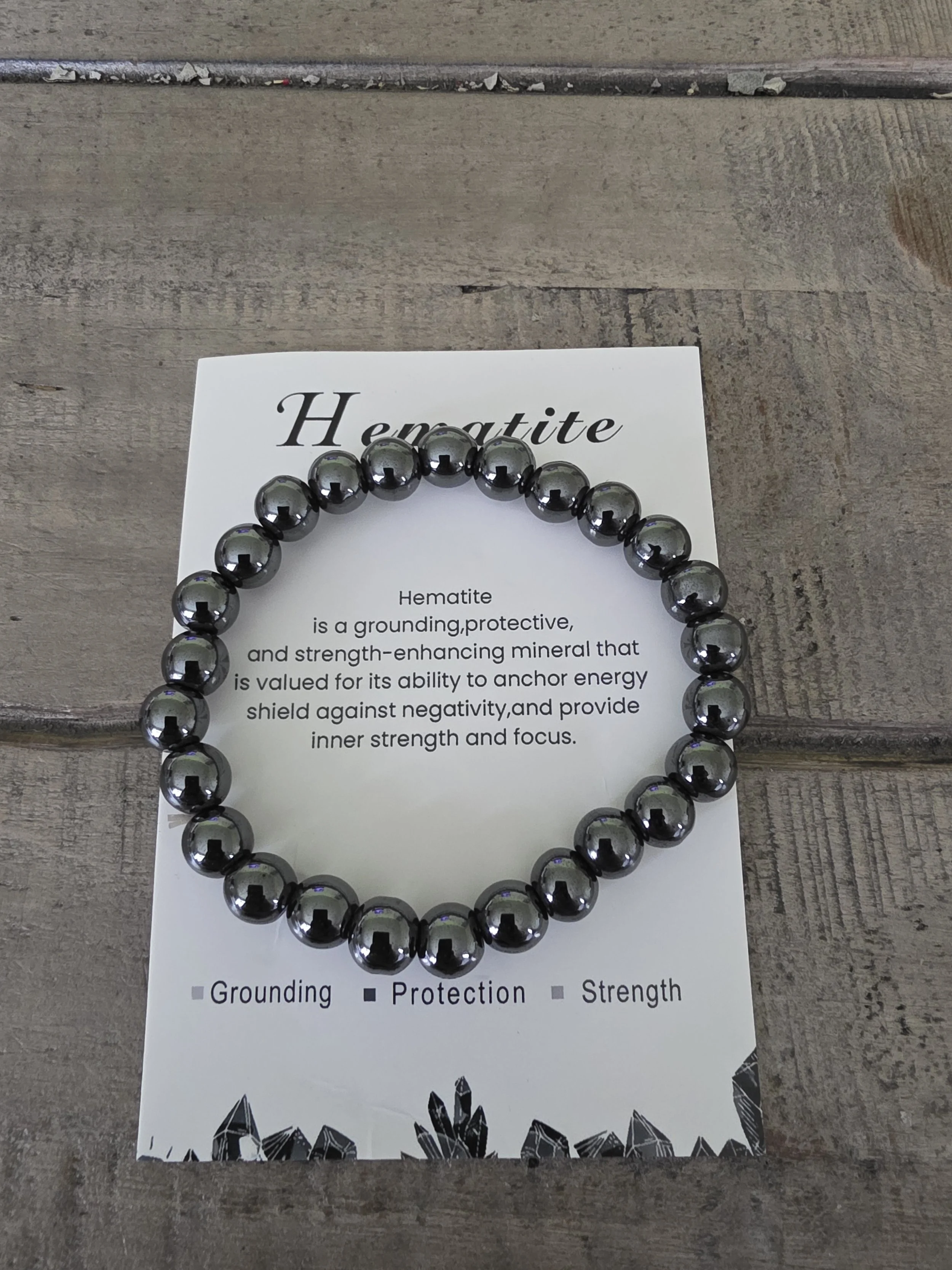 Hematite protection, grounding, strength.